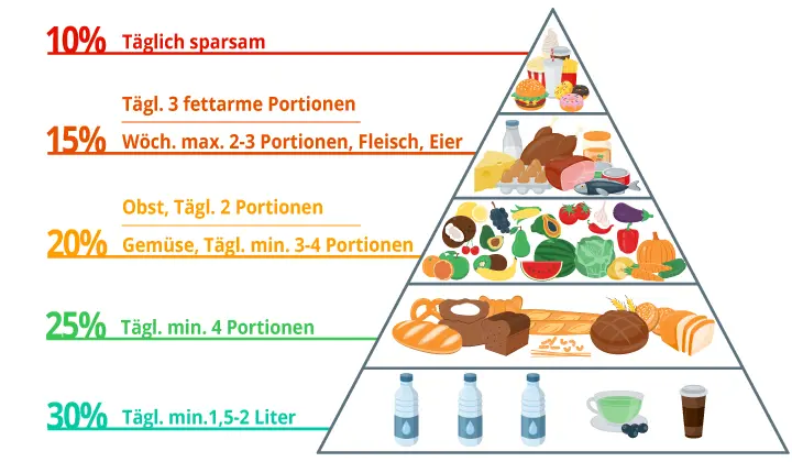 Doch wie gelingt eine ausgewogene Ernährung? Kennst du schon die Ernährungspyramide vom Bundeszentrum für Ernährung? Sie hilft dir dabei, deine täglichen Mahlzeiten zusammenzustellen und sorgt für eine gesunde Ernährung. Mit der Ernährungspyramide kannst du dein Essen ganz nach deinen Vorlieben ohne großen Verzicht oder Kalorienzählen genießen. Verbote gibt es bei der Pyramide keine.