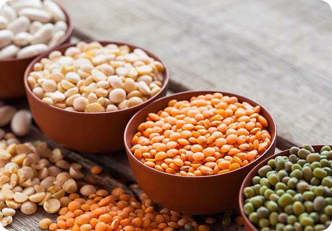 Kokosnüsse, Kokosöl, Kokosmilch, Sesam, Paranüsse, Hülsenfrüchte, Vollkorngetreide |